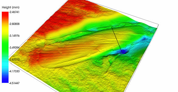 Further, the information allows the accurate modelling of the features for use in biomechanical simulation of the structures. Through the measurement of fossil records with a XYris 4000CL the pattern of venation, vein relief, thickness and wing cambering were obtained.