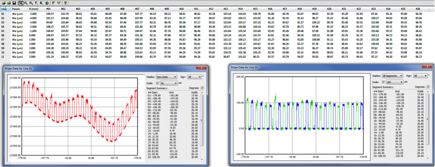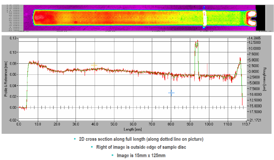 At predetermined intervals, the coupons are removed from the test and introduced to the XYris instrument. They are mounted on a spindle and rotated under a confocal laser displacement meter, such that the height of the coating and the substrate are measured as a ring. Secondly, the coating regions are measured over an area to record a full 3D surface measurement. The operator may select a predetermined programmed sequence for ring (height) and area (surface texture) measurement, or program new sequences as required using an intuitive user interface.